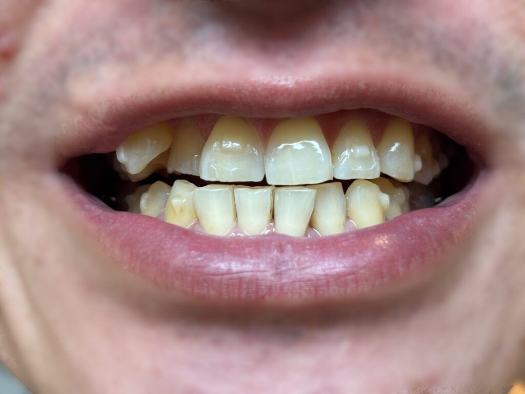 こちらは開始から130日後、13個目のマウスピースを装着し終えた時点での歯並びです。